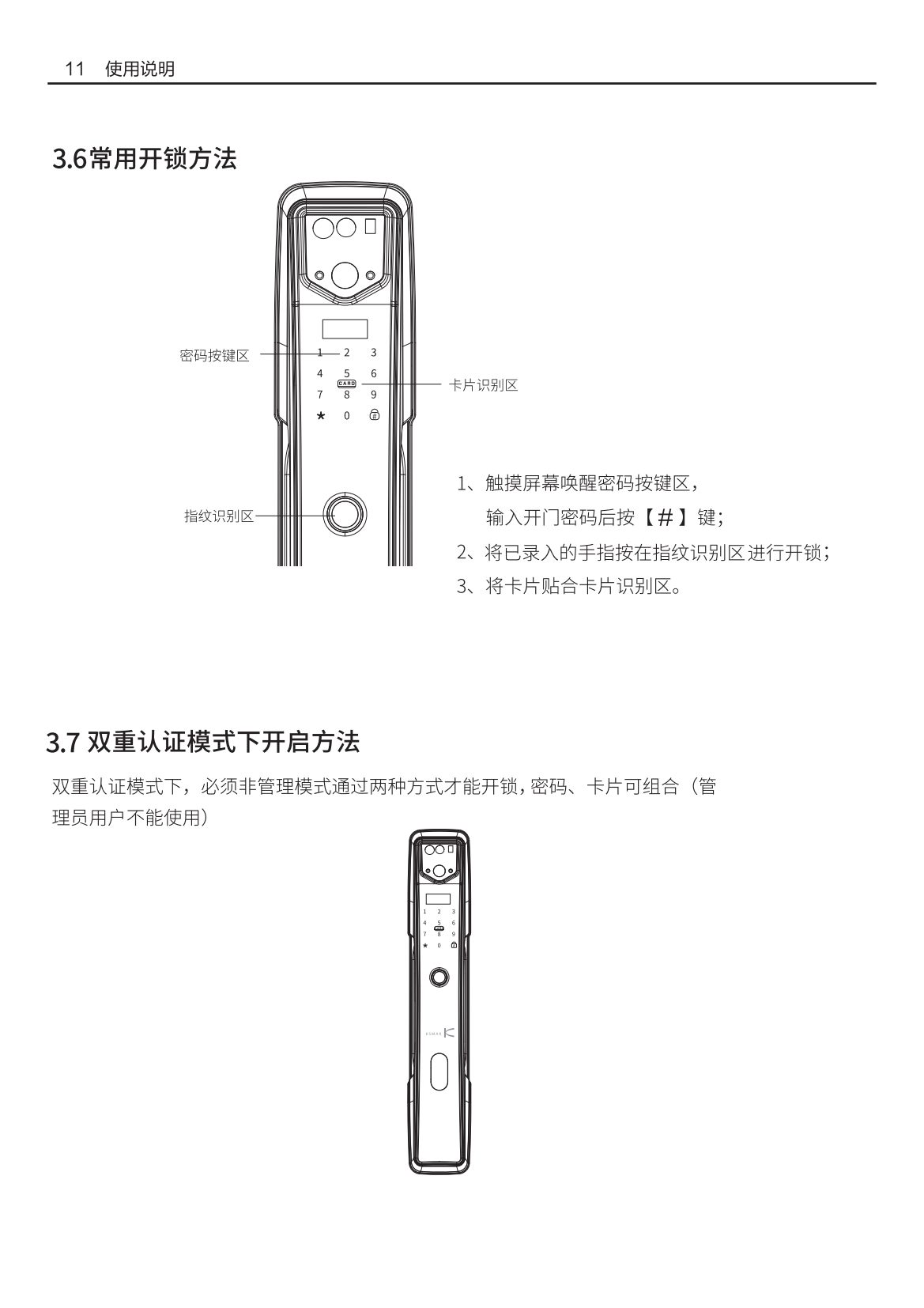 開(kāi)鎖方式或功能